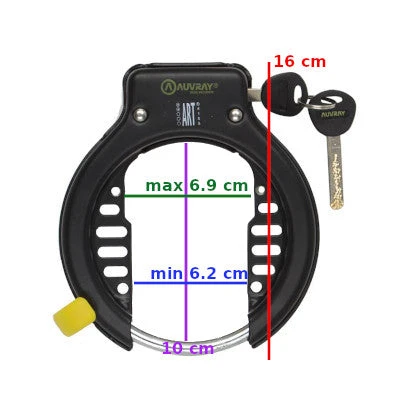 Cet antivol de cadre Auvray est très robuste. Le corps est conçu en acier cémenté et le boitier en ABS, ce qui signifie qu’il résiste à la fois aux chocs mais aussi à des températures extrêmes. Les tentatives d’effractions grâce au froid ont donc peu de chance d’aboutir.