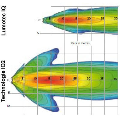 Pour diminuer la perte de luminosité, ce feu bénéficie de la technologie IQ2. En effet un prisme permet d’élargir les faisceaux lumineux de la LED sur les côtés.