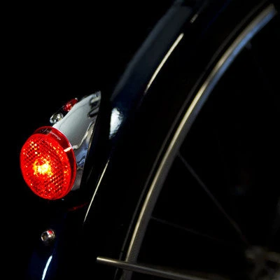 De couleur chromée, l’éclairage NR 9 Spanninga Jos possède un look rétro. Spanninga a remis au goût du jour le design de goutte, très populaire dans les années 50. De petite taille, le feu a pour dimensions 60 x 41 x 56 mm et un poids de 50 g. Livré avec sa vis de fixation, il se monte facilement sur un garde-boue vélo arrière.