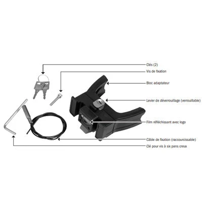 Avec cet adaptateur sécurisé Ortlieb, vous pouvez accrocher et décrocher votre panier ou sacoche de guidon très rapidement. La serrure sert à verrouiller la sacoche sur le guidon afin de pouvoir la laisser dessus en toute sécurité. La fixation est livrée avec 2 clés qui sont recommandables en cas de perte. L’installation est simple et rapide avec un seul câble à passer autour du guidon. L’adaptateur est compatible avec toutes les sacoches Ortlieb Ultimate Six Pro E à partir de 2013 ainsi que les équipements KLICKfix. La fixation est notamment compatible avec la sacoche de guidon pour VAE E-Glow.