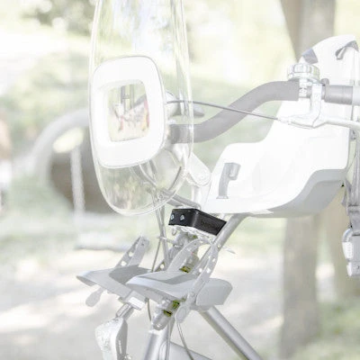 Ce dispositif, conçu pour loger les deux tiges du siège vélo Mini et du pare-brise Mini +, se fixe sur la potence. Plusieurs adaptateurs sont fournis pour aller avec soit une potence plongeur de diamètre 22 à 32 mm ou soit avec une potence de type ahead set de 1″1/8.