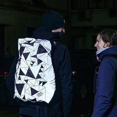 La housse pour sacs à dos permet de protéger votre sac et vos affaires de l’humidité et de la pluie grâce à son tissu hydrofugé. Cette housse est particulièrement utile pour les cyclistes urbains, comme les vélotafeurs. Double fonction, elle offre également une forte visibilité au cycliste dès que la nuit tombe. En effet, son impression est entièrement réfléchissante, complétée par des parties noires, donnant à la housse un design original. Très légère, elle ne pèse que 132 grammes et se range sansn encombre dans le sac lorsque non utilisée.