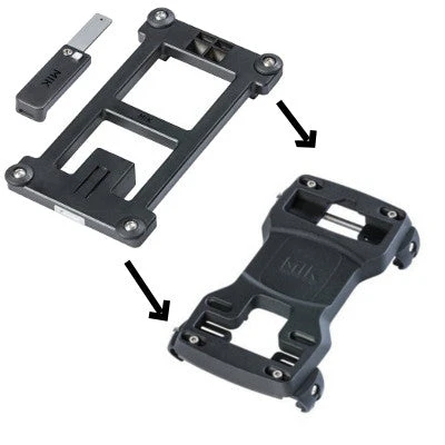 MIK a conçu un système révolutionnaire qui permet de fixer rapidement différents modèles de sacoche, panier, ou top case sur votre porte bagage. Cette plaque d’adaptation MIK peut s’installer sur votre top case, panier ou sacoche double disposant d’un espace de 19.5 x 10 cm pour faire passer les vis et accueillir la plaque. Une clé de déverrouillage est fournie avec l’adaptateur MIK pour pouvoir le défaire en un geste du support MIK.