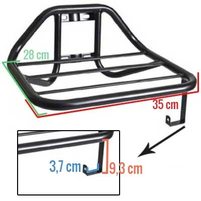 Le porte-bagage de vélo de la marque Steco est un porte-bagage avant aussi appelé plateforme. Ses grandes dimensions (35 x 28 cm) permettent de transporter facilement des objets. Il supporte une charge allant jusqu’à 15 Kg. Il est idéal pour faire des courses lorsqu’il est associé à un panier ou grande caisse en plastique pour porte-bagages.