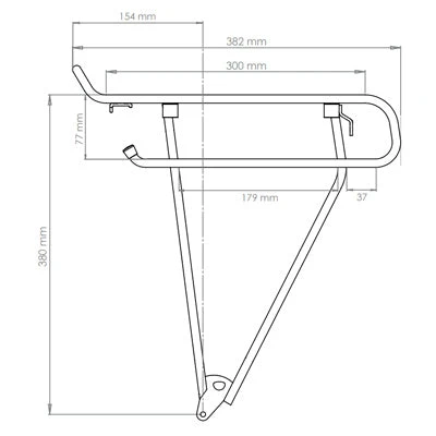 La largeur extérieure du porte bagages est de 120 mm, et la largeur intérieure est de 100 mm. La hauteur du porte bagages est de 380 mm. Vous pouvez voir le détails des dimensions du porte bagages en photos 4, 5 et 6.
