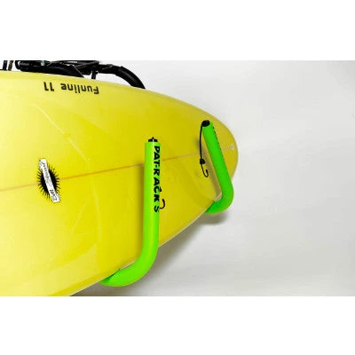 Le support pour planche Pat Racks s’apparente à un porte bagages complété de deux bras pour y glisser votre planche de surf. Le porte bagages sert de base au maintien des bras qui viennent ensuite se fixer dessus. La plateforme du porte-bagages mesure 33 cm de long pour 13,5 cm de large.
