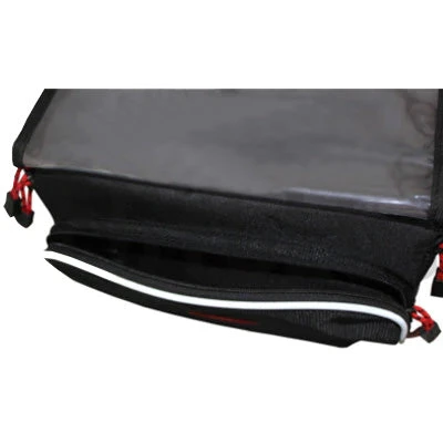 La sacoche Trenton de Norco dispose aussi d’un porte carte imperméable sur le haut de la sacoche pour consulter facilement votre itinéraire. Une housse étanche de couleur rouge est également fournie.