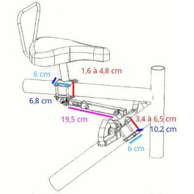 Ce siège selle se monte sur la barre horizontale du cadre de vélo. Il est ainsi adapté pour le vélo dit « pour homme », c’est-à-dire avec le top tube droit et horizontal, de 16 à 48 mm de diamètre. Ce dispositif convient aux cadres ayant un tube inférieur rond et large dont le diamètre est compris entre 34 et 65 mm. Consultez la notice d’installation de la selle sur cadre pour plus d’informations.