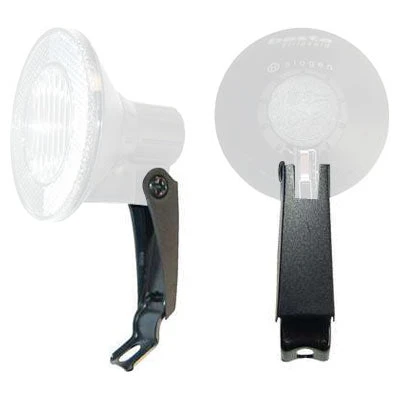 Ce support permet de fixer un feu avant sur la fourche du vélo. Il s’installe simplement en utilisant le perçage central qui se trouve sur la fourche à l’aide d’un boulon que nous proposons en option. L’attache est livrée avec la vis qui permet de fixer le phare. Ce support est compatible avec les feux avant.